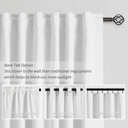 White Linen Textured Bedroom Curtains Back Tab 100% Blackout 102 Inch Room Darkening Curtains Thermal Insulated Heat Blocking Noise Reducing Drapes for Living Dining Room Modern Cottage Home Decor