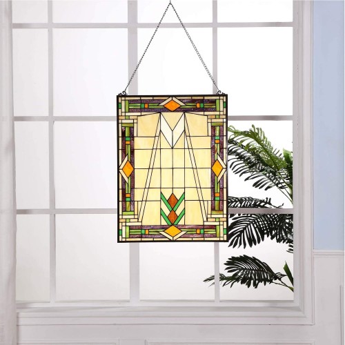 Bieye W10029 Mission Tiffany Style Stained Glass Window Panel Hangings with Chain, 18″ W x 25″ H