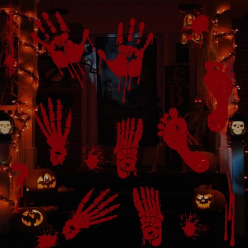 Halloween Bloody Handprint Footprint Window Stickers Wall Stickers for Halloween Party Decorations Inside Outside Decor Come with Plastic Scraper Tools 2pcs