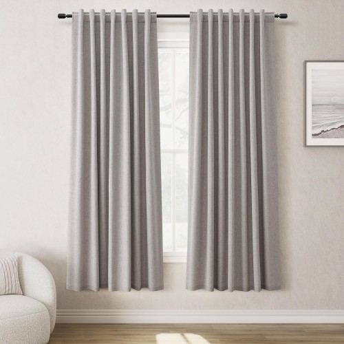 100 Inch Black Out Curtains 2 Panels Set Back Tab Thermal Insulated Natural Linen Textured Blackout Curtains Noise Reducing Cream Colored Neutral Living Room Darkening Window Drapes Pleated 52×100