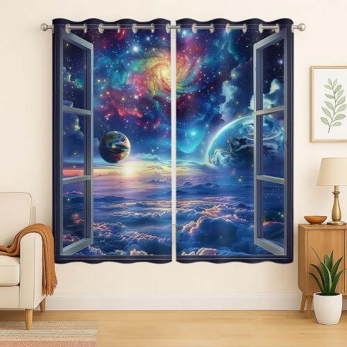 Beach Blackout Curtains for Girls Boys Teens Home Decor, Tropical Summer Scene Ocean Island Palm Tree Grommet Thermal Insulated Drapes Darkening Window Curtain for Bedroom Living Room, 42 x 63 Inch