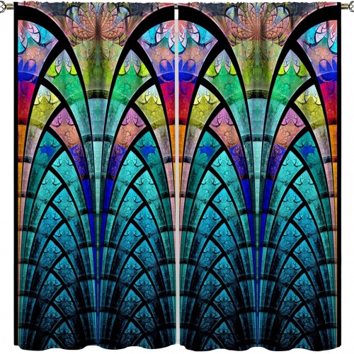 Bieye Geometric Color Block Tiffany Style Stained Glass Window Panel with Hanging Chain (13×24 inches W10090)