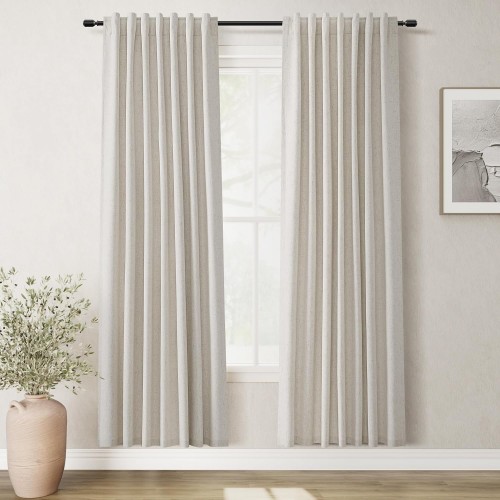 - 3 Hanging Options: Differ from the traditional curtains with grommet, BOODII linen curtains with back tab and rod pocket can full block sunlight fully. (1) Using the back tabs design to create an elegant pleated look and sit closer to the wall than traditional ring curtains, which helps to block out more sunlight; (2) Using rod pocket for a classic effect; (3) Using clip rings on track system or curtain rod, slide open/closed easily (clip rings are not included).