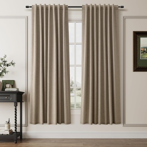 BOODII 63 Inch Blackout Curtains Green Linen Black Out Curtains for Bedroom 2 Panels Set Modern Room Darkening Curtain Thermal Insulated Curtain for Winter Window Drapes Back Tab 52×63