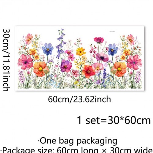Colorful Flower Garden Window Clings, Wildflower Grass Lily Peony Poppy Floral Window Decals