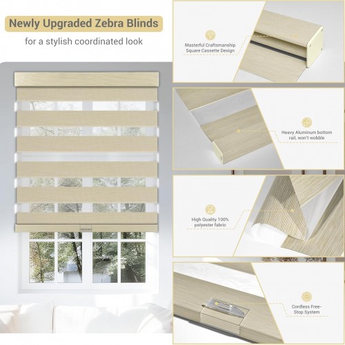 Cordless Zebra Blinds for Windows, Blackout Interior Blinds,Easy to Install,UV Protection,for Offices and Home,Custom Roller Shades, Mousse Beige,81″ W x 36″ H