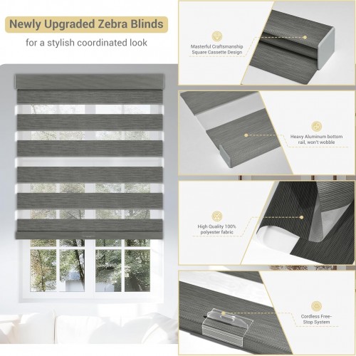 Cordless Zebra Blinds for Windows, Blackout Interior Blinds,Easy to Install,UV Protection,for Offices and Home,Custom Roller Shades, Mousse Grey,86″ W x 64″ H