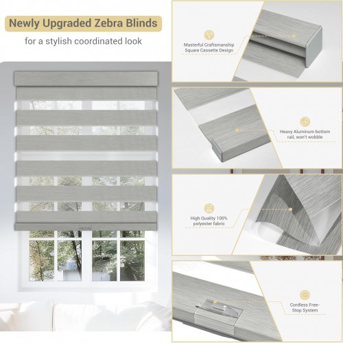 - 【Upgrade High-Quality Accessories】Our blind has been upgraded to have a sturdier bottom rail to prevent the fabric from fraying, which makes the two layers of fabrics more closely fit, maximizing the effect of shading. An anti-collision strip installed under the rail for protecting your window frame. Color-matched valance and the aluminum bottom bar suitable for all situations.