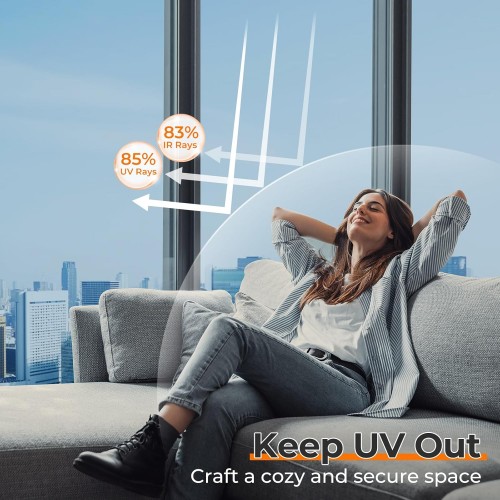 DOWELL Window Privacy Film, One Way Window Tint for Home, Static Cling Anti UV Sun Blocking Reflective Mirror Film, Heat Control See Out Not in Glass Tinting, Silver, 35.4″ x 157.5″