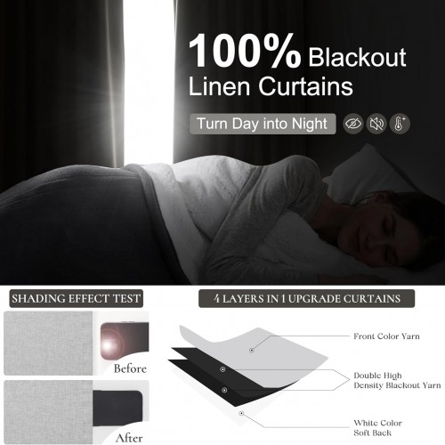 Light Grey Black Out Curtains 90 Inch Long for Living Room, Pinch Pleated Flax Linen Modern Insulated Drapes with Hooks Bedroom Curtain 2 Panels Set Soundproof Privacy Windows (40″Wx90″Lx2 Light Gray)