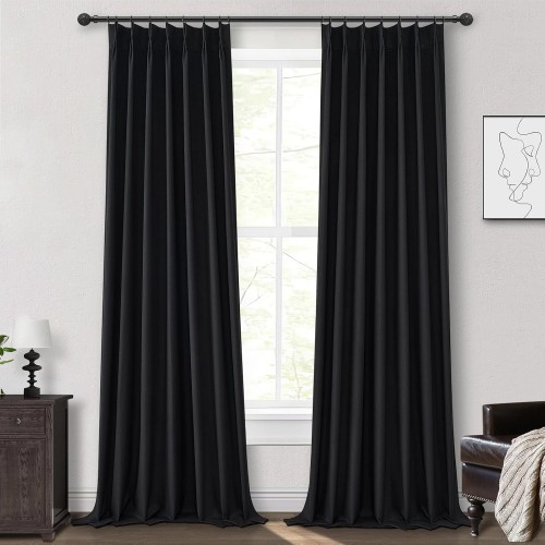 Linen Curtains 120 Inches Long for Bedroom, Ceiling Mount Track Curtains with Back Tab Pinch Pleated Blackout Drapes for Sliding Glass Patio Doors Inside 10 ft Large Window Farmhouse 2 Panels