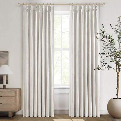 MIULEE Beige 100% Blackout Linen Curtains 94 Inch 2 Panels Set Double Sided No Coating Pleated Back Tab Black Out Long Thermal Insulated Pinch Pleat Bedroom Living Room Darkening Window Drapes
