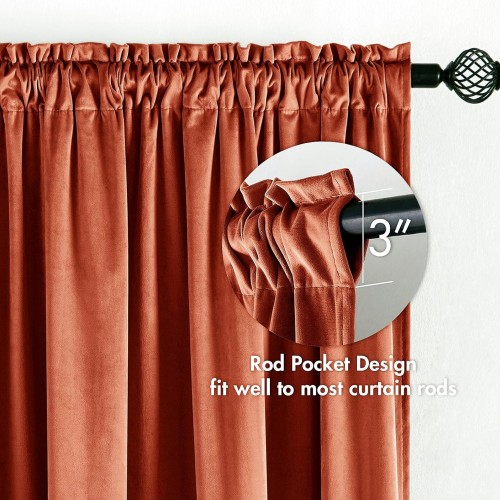 MIULEE Burnt Orange Velvet Curtains Thermal Insulated Blackout Curtain Fall Drapes for Bedroom Living Room Darkening 108 Inches Long Rust Terracotta Panels Rod Pocket Set of 2