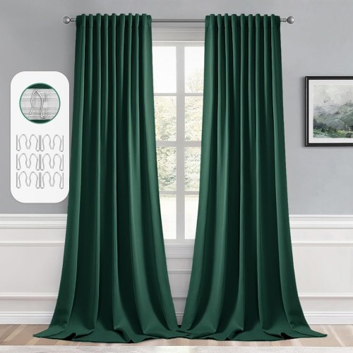 MIULEE Hunter Green Back Tab Blackout Curtains 108 Inch Long 2 Panels Set for Living Room Bedroom, Rod Pocket/Pinch Pleat Extra Long Thermal Insulated Room Darkening Pleated Window Drapes