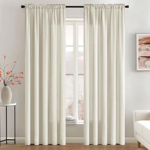- Quality Fabric: These curtains are pretty and light.The quality is outstanding and fabric is soft.They are smooth enough,with good air circulation.Offers a more textured feel than ordinary sheer curtains.