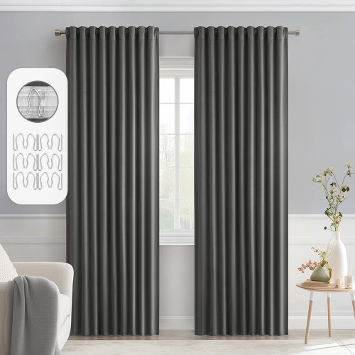 MIULEE Taupe Back Tab Blackout Curtain 96 Inch Long 2 Panels Set for Bedroom, Rod Pocket/Pinch Pleat Thermal Insulated Living Room Darkening Pleated Light Blocking Floor to Ceiling Drape