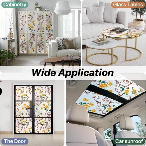 Niviy Stained Glass Window Privacy Film with Installation Tools, 3D Frosted Glass Window Decals UV Protection Sun Blocking Static Clings Non Adhesive Glass Stickers for Home 17.5 x 118 inch