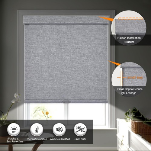 Persilux Blackout Roller Shades for Indoor Windows with Upgraded Cassette, Cordless Shades Window Blinds Pull Down for Doors, Easy to Install for Office/Living Room/Bedroom, Grey(56″ W x 56″ H)