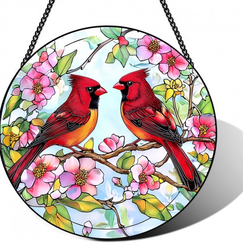 Stained Glass Window Hanging – Double-Sided Glass Sun Catcher with Chain – Memorial Window Art Panel for Home Décor, Spiritual Comfort, and All-Occasion Gifting