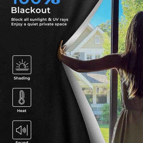 Sumobaby 50″x57″ Portable Blackout Curtains, Blinds for Windows with Hook & Loop Tapes, 100% Blackout Window Shades, Curtains Easy to Cut Fit for Bedroom, Baby Room and TV Room (Black)