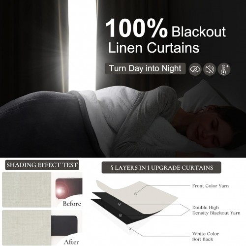 Tall Curtains for Living Room 108 Inches Long, Linen Pinch Pleated 100% Blackout Viral Window Curtains with Hooks for Bedroom Thermal Pleated Drapes for Nursery Beige White(40″ Wx108 Lx2 Panels)
