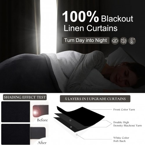 - 100% Blackout Curtains:White backing definitely can block out full sunlight,uv rays and work well in thermal insulating,noise reducing,balance temperature.Providing complete darkness and privacy in a room, which you can enjoy your sweet sleeping anytime